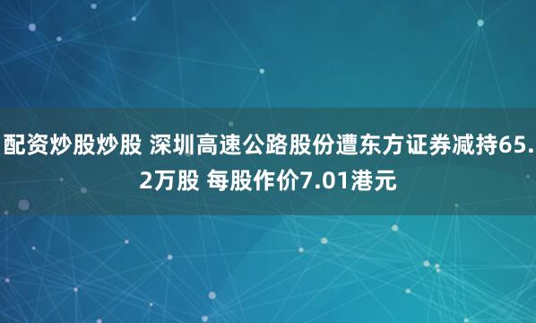 配资炒股炒股 深圳高速公路股份遭东方证券减持65.2万股 每股作价7.01港元